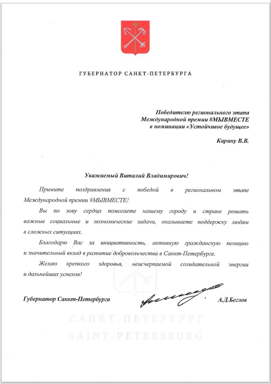Проектная команда Петербургского молодежного форума общественной безопасности «Сигнал» делится важной новостью. Руководитель проекта Виталий Карин был награждён благодарственным письмом Губернатора Санкт-Петербурга за первое место в региональном этапе и выход в полуфинал Международной премии «МыВместе» – 2025 в номинации «Устойчивое будущее». Высокая оценка отмечает вклад в развитие проектов по обучению первой помощи и укреплению культуры безопасности в рамках межрегионального молодежного проекта «T-Help».